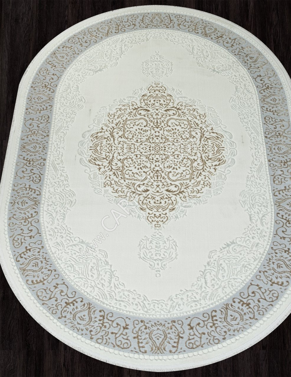 Ковер турецкий 00759B SAHARA (Полиэстер, кремовый) овальный